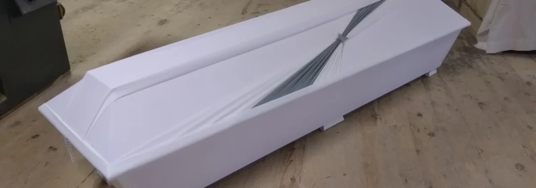 Kotimainen kangasverhoiltu arkku harmaa-valkoisella tähtiverhoilulla kannessa.